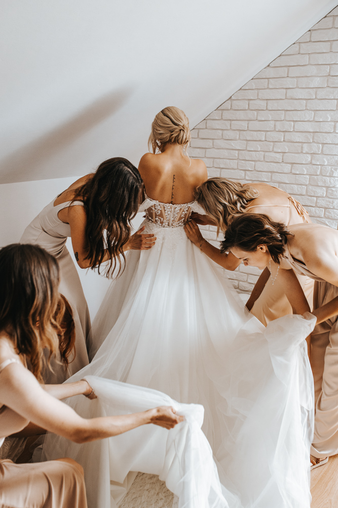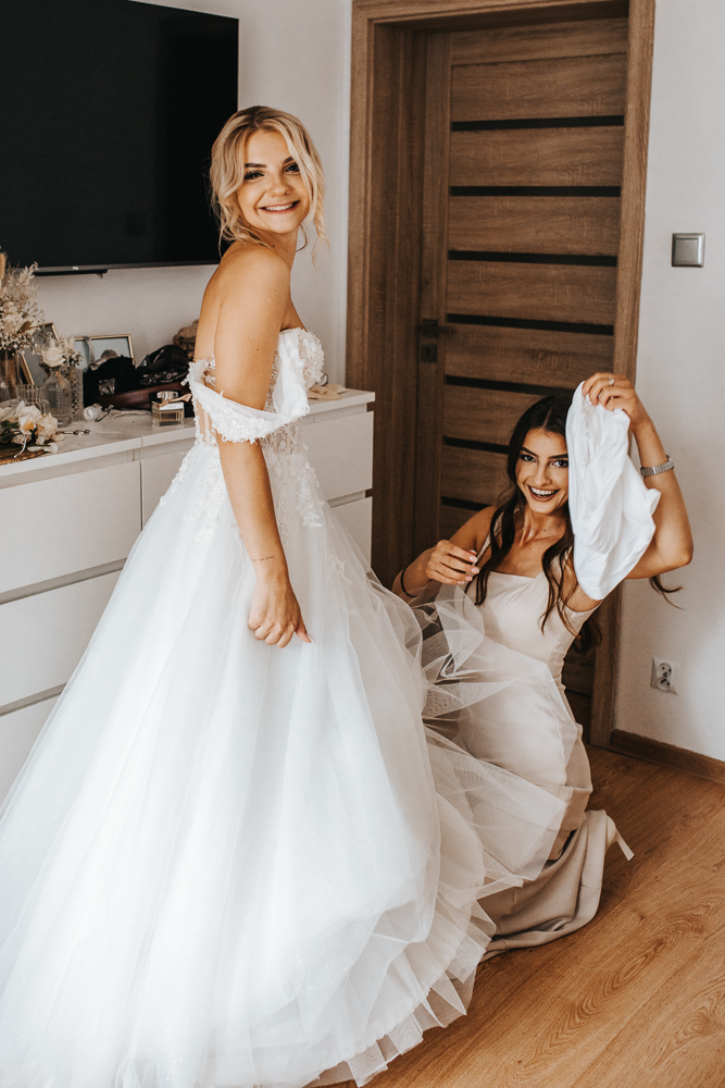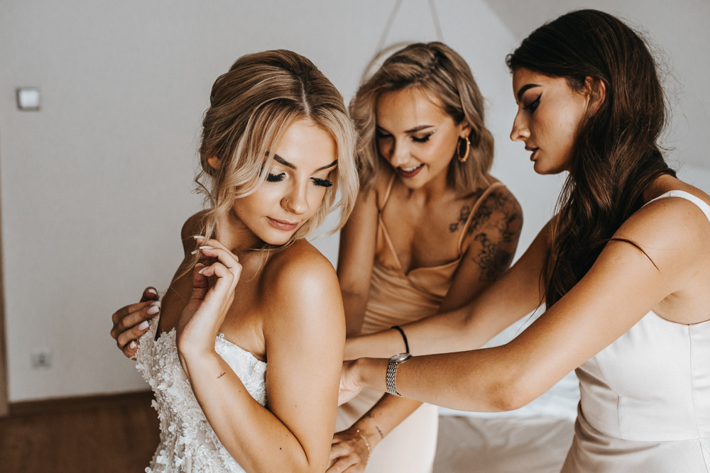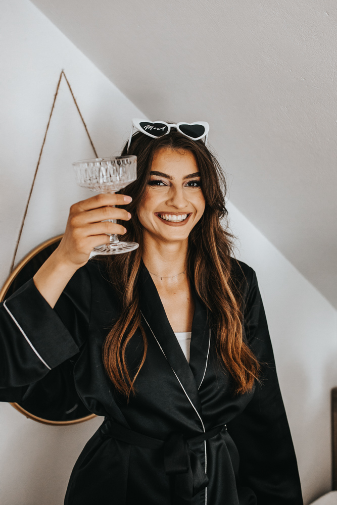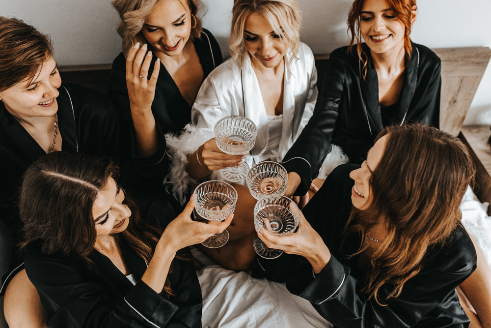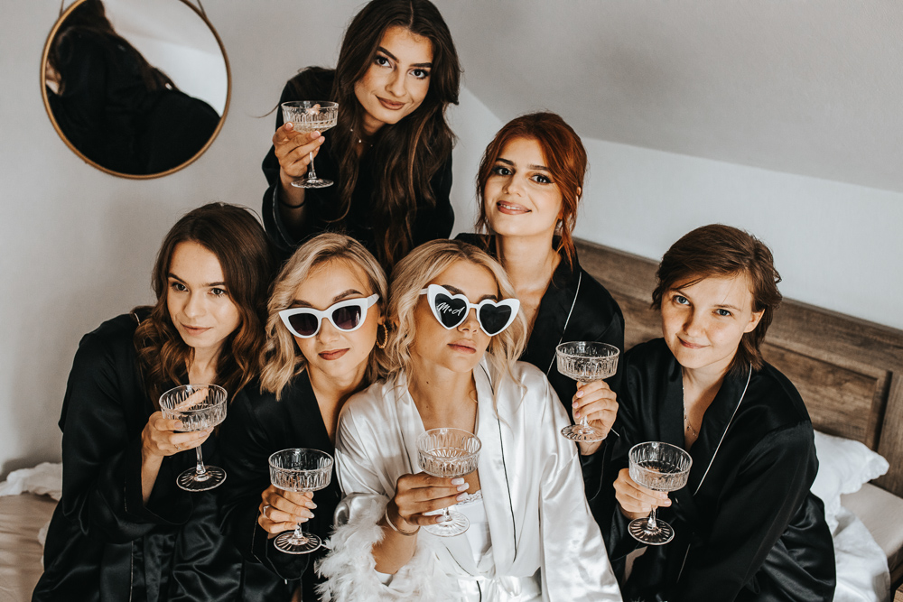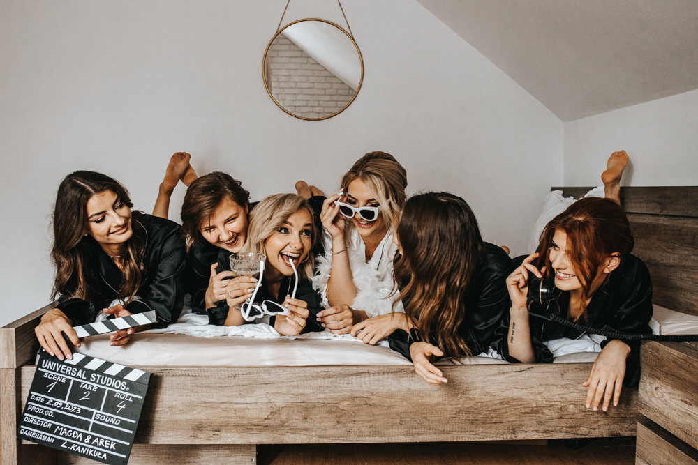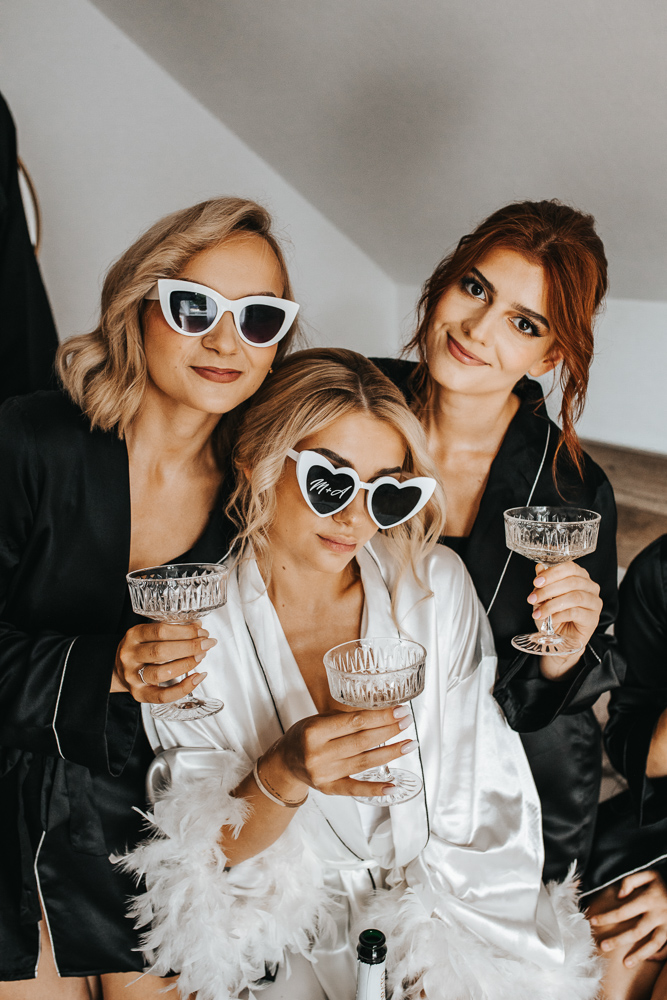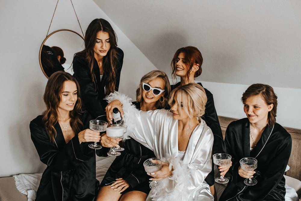Dzień rozpoczął się w cudownej atmosferze. Magda zadbała o to, by jej przyjaciółki czuły się wyjątkowo – każda z nich otrzymała piękny, szlafrok, stylowe okulary przeciwsłoneczne i kieliszek szampana. Śmiech i radość towarzyszyły od samego początku, a kadry z przygotowań tworzyły się same.