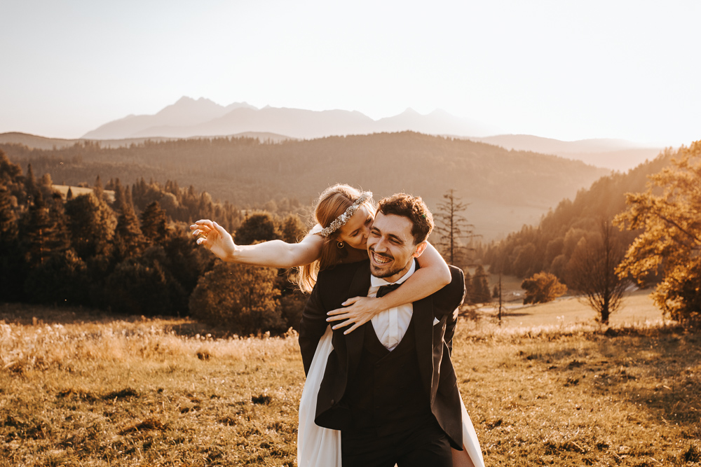 Jako fotograf z Podhala bardzo doceniam, że mam tak blisko miejsca, które dają tak niesamowite możliwości. Tatry, okolice Zakopanego i plenery po słowackiej stronie to przestrzenie, które idealnie sprawdzają się na sesję ślubną. Każda pora roku i każda pora dnia potrafią pokazać tu coś innego, ale zachód słońca zdecydowanie ma w sobie szczególną magię.