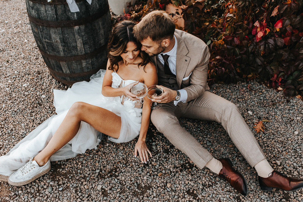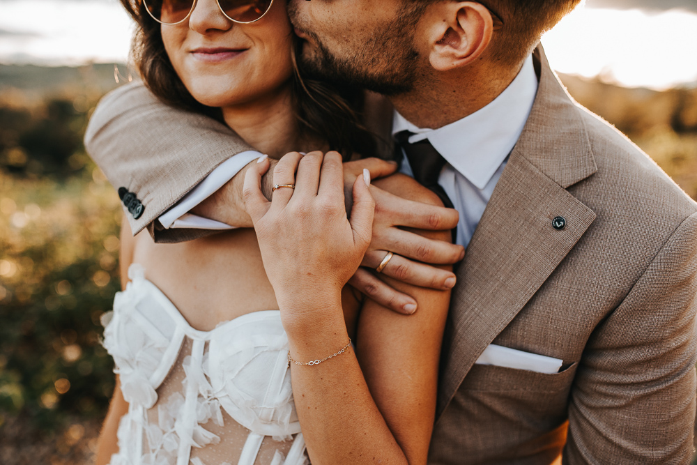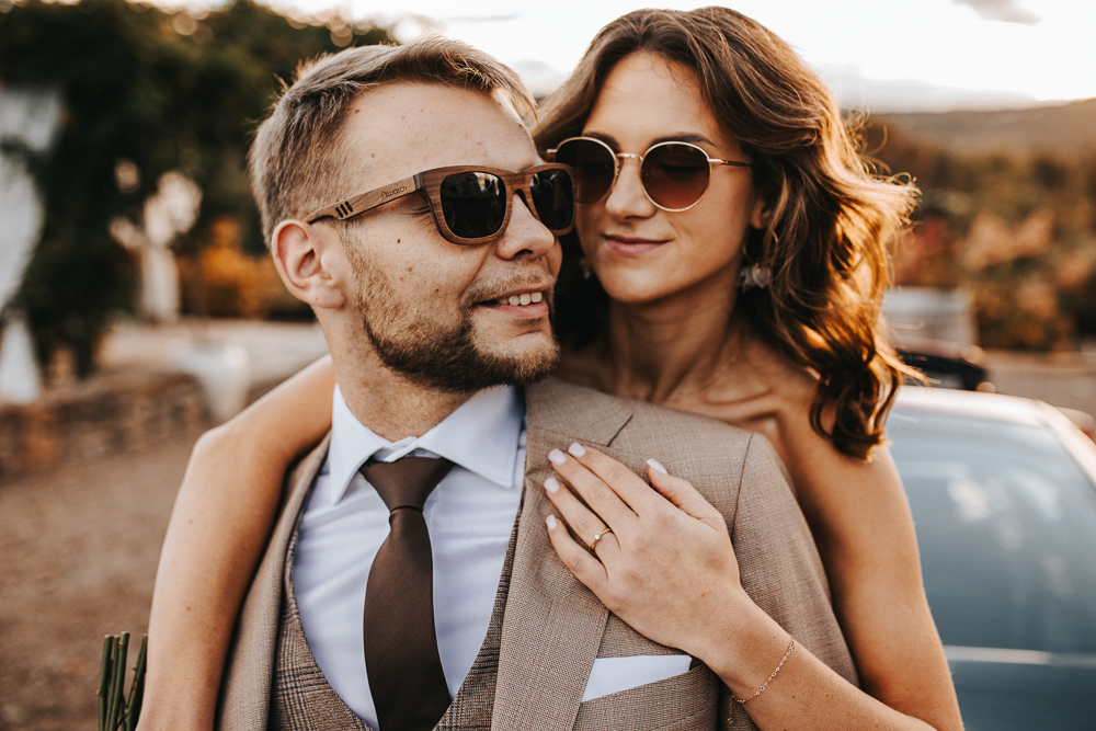 Najpiękniejsze momenty tej sesji powstały tuż przed zachodem słońca, gdy złote promienie otulały parę, tworząc niepowtarzalny nastrój. Spacer po kamiennych ścieżkach, romantyczne spojrzenia i delikatne muśnięcia dłoni – to właśnie te chwile uchwycone w obiektywie opowiedziały historię Eweliny i Konrada w najbardziej autentyczny sposób.
